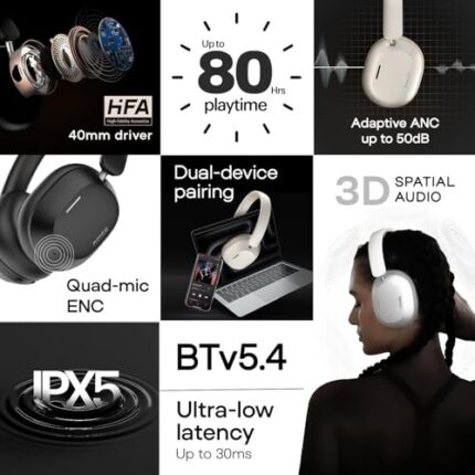 ₹799.00Noise Newly Launched Airwave Max 5 Wireless Over Ear Headphones with Adaptive Hybrid ANC (up to 50dB), HFA Tech, 80H Playtime, Dual Pairing(Calm White) : Musical Instruments