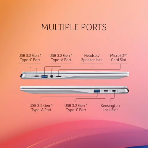 About this item Chromebook laptops run on Chrome OS – An operating system by Google that is built for the way we live today. It updates automatically, boots up in seconds and continues to stay fast over time. This highly secure OS with added layer of Titan C chip keeps your digital world protected. Efficient Performance: Powered by an Celeron N4500 Dual-Core Processor with Burst Technology, this Chromebook delivers seamless performance for your everyday computing needs, with speeds of up to 2.8GHz and 4MB L2 cache to handle multitasking effortlessly. Immersive Visual Experience: Enjoy crystal-clear visuals on the 15.6″ Full HD Widescreen ComfyView LED-backlit Display, featuring a resolution of 1920 x 1080 and a 16:9 aspect ratio, perfect for work or entertainment. Seamless Connectivity: With 2 USB 3.2 Gen 1 ports, 2 USB Type-C ports, and a 3.5mm combo jack for headphone/speaker, this Chromebook offers versatile connectivity options to easily connect your peripherals and accessories. Power adapter: USB Type-C 45 W Google PD AC adapter, WLAN: Intel Wireless Wi-Fi 6 AX201 Long-lasting Battery Life: Stay productive on the go with up to 10 hours of battery life, powered by the Lithium Ion Battery, ensuring you can work, stream, and browse without interruption throughout your day.