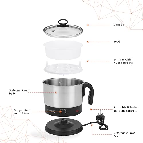 Electric Multipurpose Kettle | for boiling Water, Eggs | Making Tea, Coffee| Stainless Steel Body with Automatic Shut-off | 18.3L x 15.7W x 19.1H cm | 1.2 L | 220 Volts | Silver, Black : Home & Kitchen