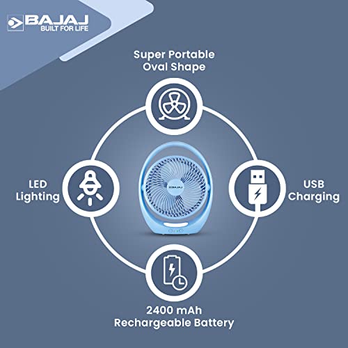 Bajaj Pygmy Go 178MM Mini Fan with LED Lighting | Rechargeable | USB Charging | 4-hours Battery Backup | 3 Speed | 2-Light Brightness Setting | High Speed | Portable【Blue】 : Computers & Accessories