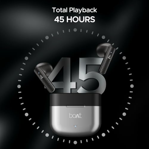 About this item 13 mm Drivers with boAt Signature Sound: High-performance 13 mm drivers in the boAt Airdopes 91 Prime TWS Earbuds are your gateway to the audio realm. Feel your favorite tunes come alive with the powerful bass of boAt Signature Sound every time you plug in your Airdopes. 45 Hours of Playtime: Watch live games, listen to podcasts, or work out to your playlist for around 45 hours non-stop with these earbuds. Charge less and enjoy more! 50 ms Latency BEAST Mode: Take out lag from the mix while gaming with BEAST mode. Once activated, the 50 ms low latency syncs virtual frames with power-packed audio for adrenaline-raising gaming sessions. Dual Mics with ENx Technology: Make calls on the go with the ENx-powered dual mics. Join work calls or catch up with friends from the airport lounge, café, metro, etc., without annoying background noise.ASAP Charge: Airdopes 91 Prime is your movie marathon partner for the long haul with its fast charging which lends a whopping 120 minutes of playtime when you charge the earbuds for just 10 minutes. ASAP Charge: Airdopes 91 Prime is your movie marathon partner for the long haul with its fast charging which lends a whopping 120 minutes of playtime when you charge the earbuds for just 10 minutes.