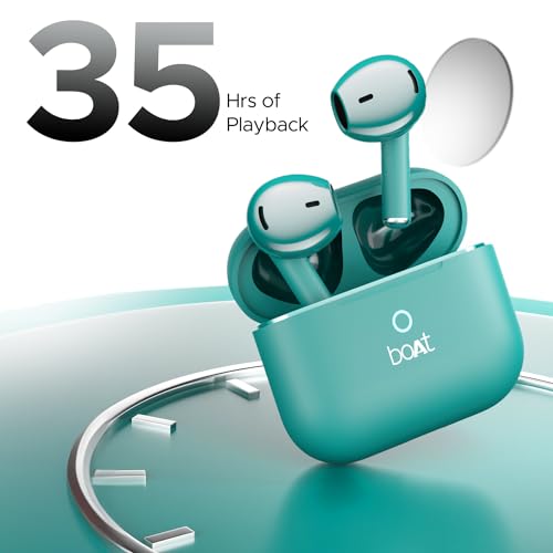boAt Airdopes Joy, 35Hrs Battery, Fast Charge, IWP Tech, Low Latency, 2Mic ENx, Type-C Port, v5.3 Bluetooth Earbuds, TWS Ear Buds Wireless Earphones with mic(Dark Cyan) : Electronics