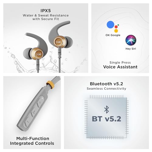 Boat Rockerz 235 Pro Wireless Bluetooth Neckband in Ear Earphone, Upto 20 hrs of Playtime, Beast Mode, Low Latency, IPX5 Water & Sweat Resistance, ENx Technology, Bluetooth v5.2(Ash Grey) : Electronics