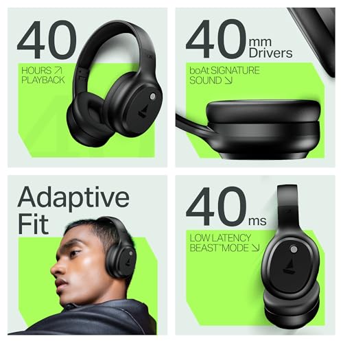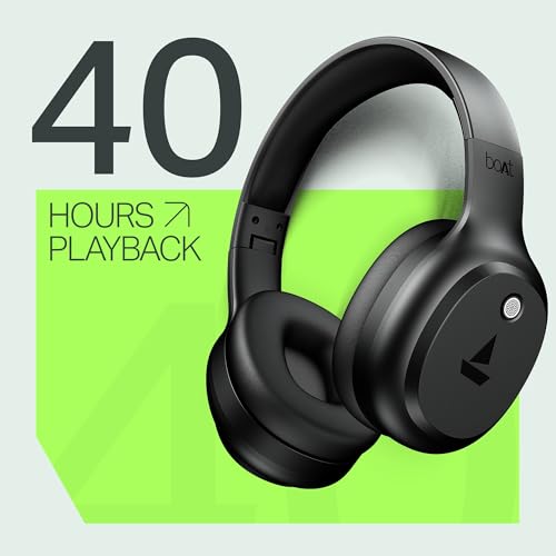About this item 40 hours of Playback: Groove more without frequent charging. boAt Rockerz 421 Bluetooth Headphones feature a huge playtime of up to 40 hours for uninterrupted audio fun. 40 mm Drivers boAt Signature Sound: Boasting high-quality 40 mm drivers that pump out bass-heavy boAt Signature Sound, these headphones enhance your audio immersion 40ms-Latency BEAST Mode: Score on your go-to games by activating gaming BEAST mode which features a low latency of 40ms. Bid goodbye to lag and delve into realistic gaming boosted by synchronized visuals and sound. ENx Technology: Answer calls in noisy areas from a busy room, public transport, or café. The integrated ENx tech-enabled mic ensures noise-free conversations no matter where you are. Bluetooth v5.4: Breeze through your watchlist or even call your contacts with wireless comfort thanks to Bluetooth v5.4. Connect these headphones wirelessly and unlock seamless listening.