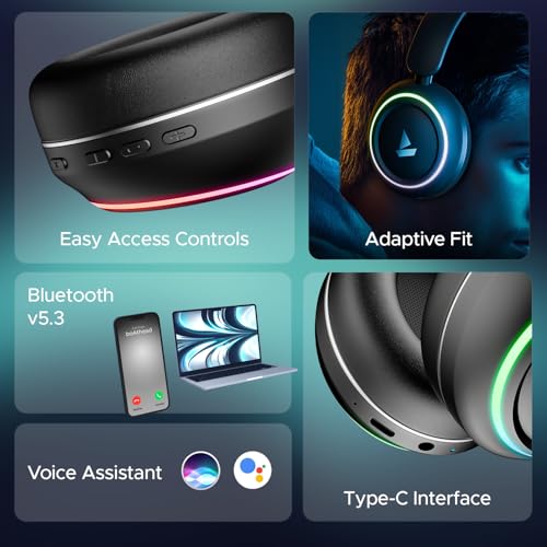 boAt Rockerz 480 W/RGB LEDs, 6 Light Modes, 40Mm Drivers, Beast Mode, 60Hrs Playback, Enx Tech, BT V5.3, Adaptive Fit & Easy Access Controls, Bluetooth Over Ear Headphones(Black Sabre) : Electronics