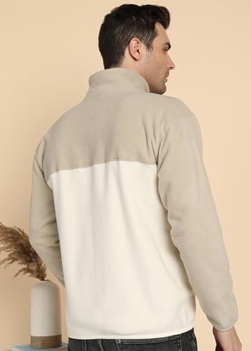 Buy Alan Jones Clothing Men Solid Stand Collar Fleece Full Zip Standard Length Jacket (Beige_3XL)