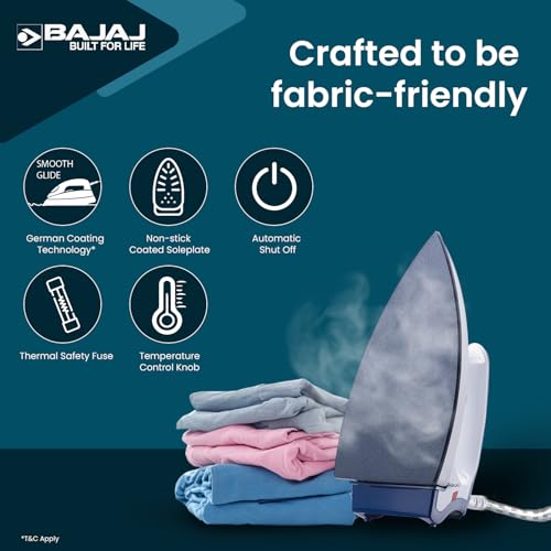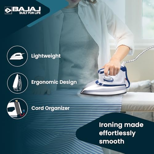Buy Bajaj Stainless Steel Majesty DX-11 1000 Watts Dry Iron | Advance Soleplate And Anti-Bacterial German Coating Technology | Automatic Shut Off | Thermal Safety Fuse | 2-Yrs Warranty 【White & Blue】 Online at Low Prices in India –