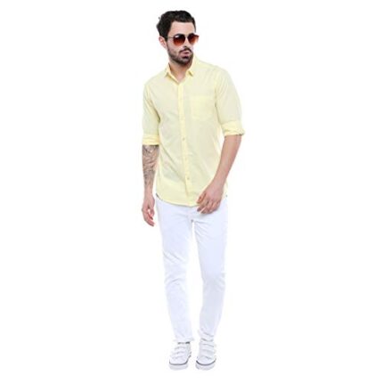 Buy DEELMO Men’s Cotton Blend Geometric Regular Fit Shirt (MON321_CHIKU_Down Round_Print_40_Beige