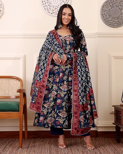 Buy KLOSIA Women Printed Anarkali Kurta and Pant with Dupatta (in, Alpha, S, Blue)