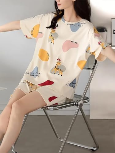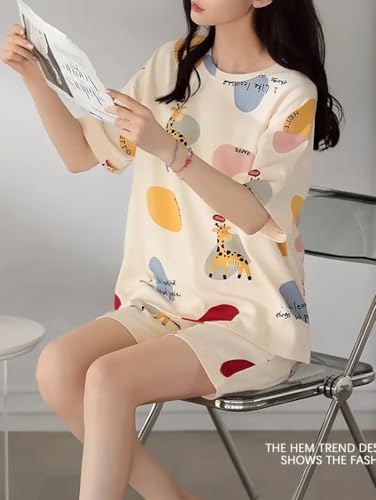 Buy LOUIS LUXE Womens Polyester Night Dress | Short Pyjama Set | Nightsuit | Nightwear |Round Neck Short Sleeve Nightsuit | Loungewear | Everyday Nightdress (ND-01-OFFWHITE-M)