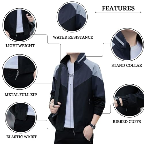 Buy MIA FASHION Mens Jackets for Summer, Lightweight Windcheater Jacket, Full Sleeves, Regular Fit, Stylish Stand Collar, Zipper Closure
