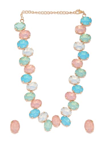 Buy Rubans Azure Frontier Magic Gold-Plated Multicolor Stone Studded Jewellery Set For Women