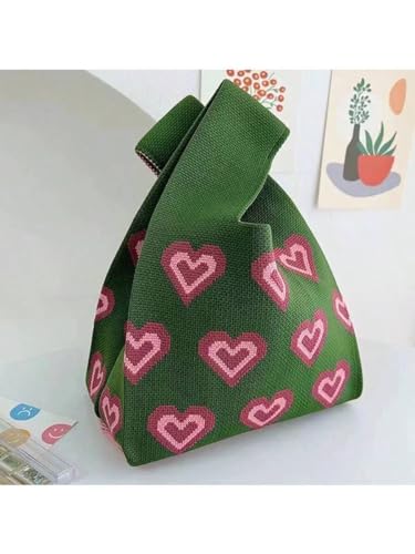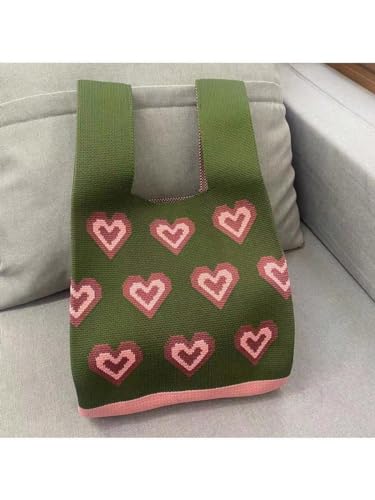 Buy Street27® Japanese Style Wrist Handbag for Women Knitted Handbag With Bow Décor Aesthetic Crochet Knit Tote Bag suitable for daily use, Shopping, Travel, Gift (Green Hearts)