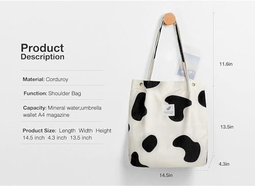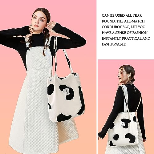 Buy Street27® Korean Canvas Corduroy Tote Bag Casual Work Shoulder Handbags | Multi-Purpose Bag |Sturdy Canvas Bag with Large Capacity | Shopping Bag for Office, College & Daily Use (Cow)