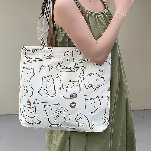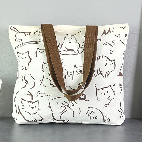 Buy wolpin Women Reusable Shopping/Grocery Classic Tote Bag With Pocket Shoulder Cotton Handbag Zipper Closure Travel Bag Multi-Purpose, Funny Cat, Beige