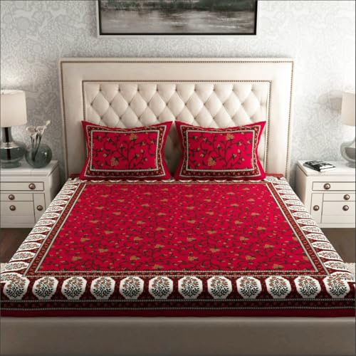ColorKart Pure 180 Tc 100% Cotton Double Bed Sheet with 2 Pillow Covers (Bedsheet for Double Bed Cotton, Red Floral Jaipuri, King Size Summer Collection – 003 : Home & Kitchen