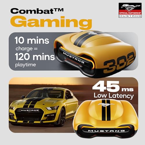 GOBOULT Mustang Torq Wireless in Ear Earbuds with 60H Playtime, App Support, Quad Mic ENC, 45ms Low Latency, 13mm Driver, Breathing LEDs,Touch Controls, Made in India, IPX5, Ear buds Wireless (Yellow) : Electronics