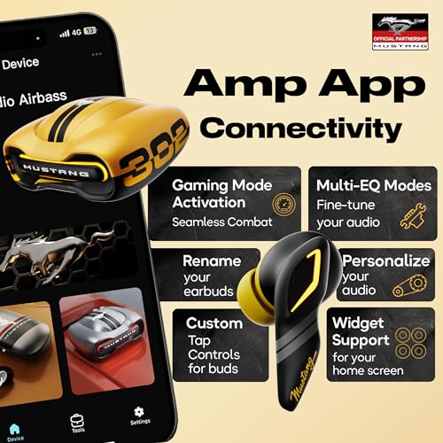 About this item ✅Boult Mustang Collaboration: Experience the ultimate fusion of world-class design, advanced tech, and exhilarating speed. Inspired by the Ford Mustang, these earbuds deliver iconic aesthetics with cutting-edge audio performance. ✅Amp App Connectivity: Personalize your sound with the Amp App. Customize EQ modes, assign touch gestures, and ensure optimal performance with the Quick Cleanup feature. ✅ Zen Quad Mic ENC: Advanced Environmental Noise Cancellation (ENC) with quad microphones ensures crystal-clear calls, even in noisy environments. ✅ 60 Hours Playtime: Extended battery life of up to 60 hours, keeping your music and calls uninterrupted on long journeys or gaming marathons. ✅ 45ms Low Latency Gaming: Ultra-low latency (45ms) for lag-free gaming and real-time audio synchronization, ensuring a seamless competitive edge. ✅ Blink & Pair BT 5.4: Instant auto-pairing with the latest Bluetooth 5.4 for stable, high-speed connectivity and low power consumption. ✅ Dynamic EQ Modes: Fine-tune your sound experience with multiple EQ modes, adjusting bass, treble, and mids for an immersive listening session.