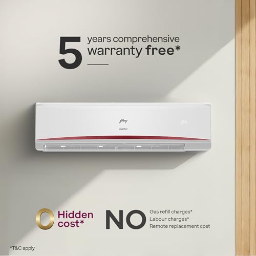 Godrej 2 Ton 5 Star, 5 Years Comprehensive Warranty, AI Powered, 5-In-1 Convertible Cooling, 4 Way Air Swing, Heavy Duty Cooling At 52°C, Inverter Split AC (Copper, EI 24LINV5R32-WWR, White) : Appliances