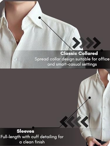 GRECIILOOKS Men’s Formal Button Down Shirt – Slim Fit Office Wear Shirt’s for Men | Textured Long Sleeve Cotton Blend | Business & Meeting Ready White : Clothing & Accessories