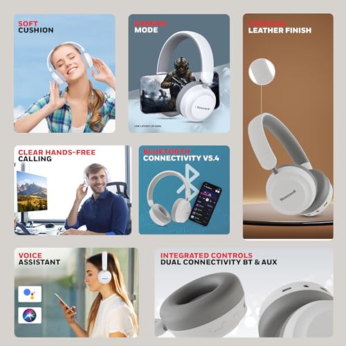 Honeywell New Launched Moxie V20 Bluetooth v5.4 On-Ear Headphones with Mic, ENC, 25H Playback, Deep Bass, IPX4, Aux, Stereo Sound, 40ms Low Latency Gaming Mode, Padded Cushion : Electronics