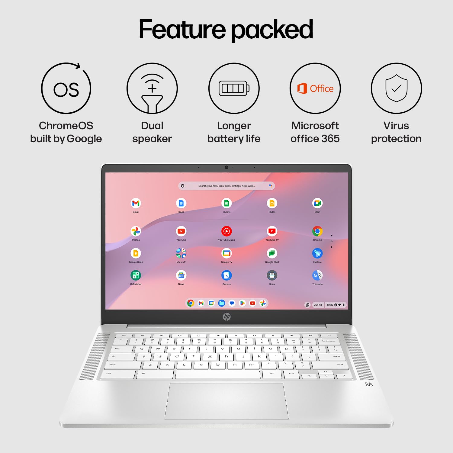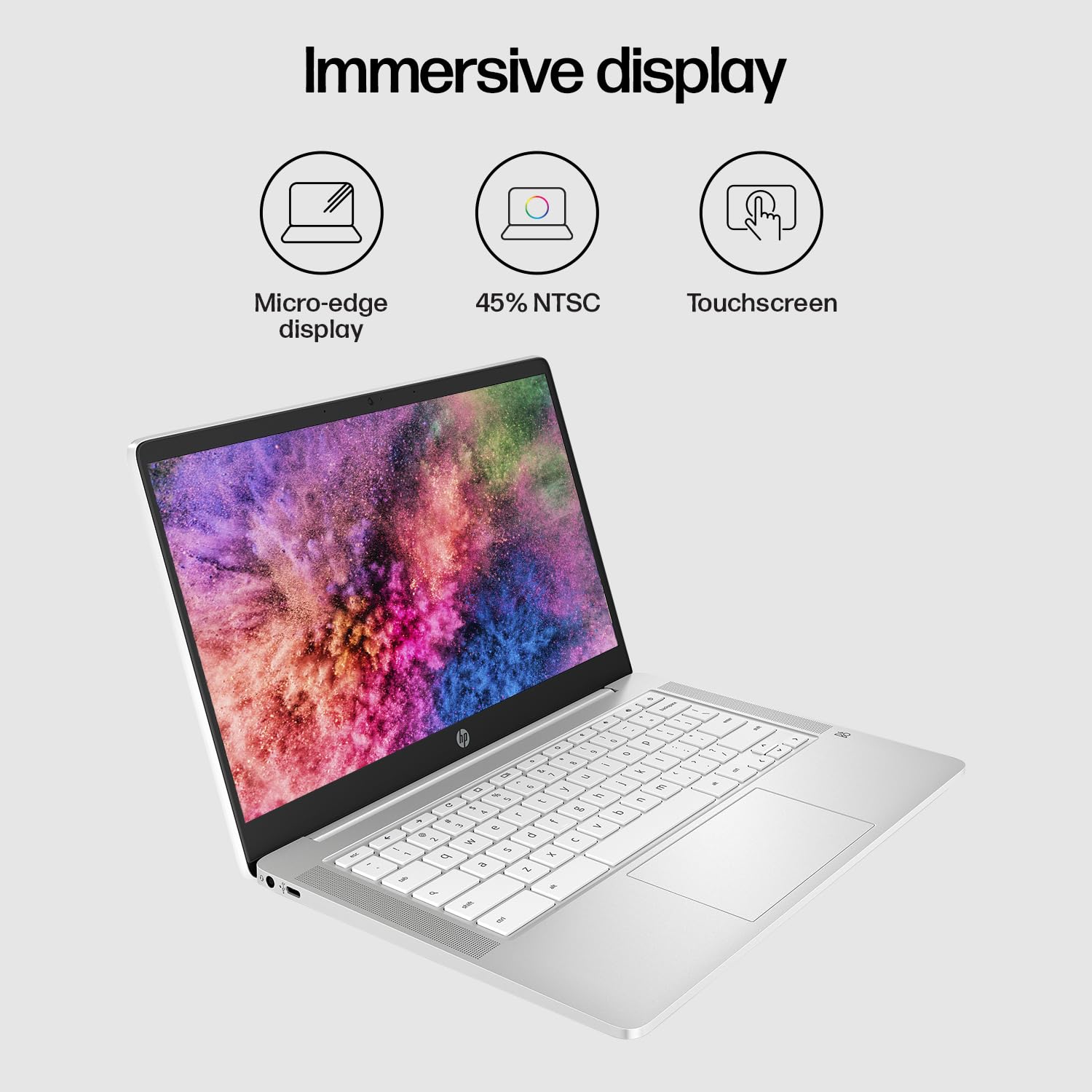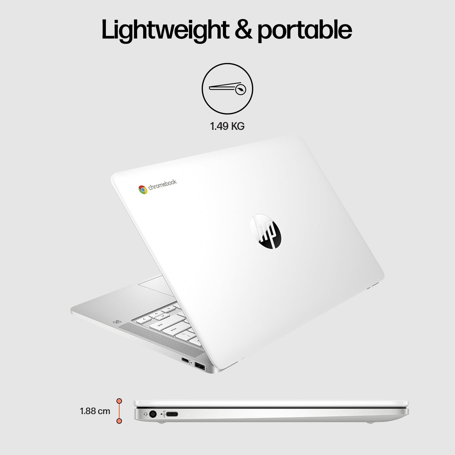 About this item 【4-core Intel Celeron N4120】4 threads and 4MB L2 cache boost productivity with blazing-fast processing speeds. Intel UHD graphics deliver stunning visuals for an enhanced viewing experience. 【Upgraded memory and storage】4GB LPDDR4 RAM allows you to switch between demanding applications effortlessly. 64GB eMMC storage creates room for all your files and data with ample storage space. 【Touchscreen】The 14-inch, HD, 220-nit, touchscreen, and micro-edge display is innovatively engineered to rotate 360° so that you can view your screen from all angles with pristine clarity. 【Effortless connectivity】Wi-Fi 5 (2×2) and Bluetooth 5.0 provide a smooth and reliable wireless experience. Plug in easily and stay connected with 2 x USB Type-C and 1 x USB Type-A ports. 【Long battery life】Fast charge your device from 0% to 50% in 45 mins. Extend your day into the night with an enduring 47Wh battery that helps you tackle work and play, all day long. 【Business conferencing】HP Wide Vision 720p HD camera with integrated dual array mics, and dual speakers enables a clear and uninterrupted video calling experience with minimal distractions. 【Why HP】Experience the unparalleled advantages of choosing HP, the most preferred and trusted PC brand by Indians, which empowers you with cutting-edge technology and steadfast dependability.