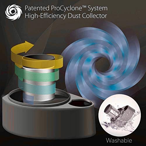 The patented “L” Shaped Pro-Cyclone Technology provides powerful suction and provides no loss of suction power even when the dust compartment is full.