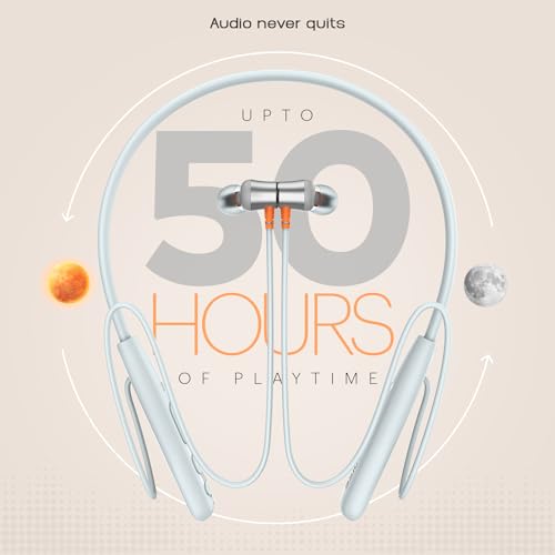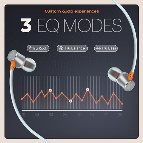 About this item Up to 50 hour playtime:- For playlists that you never want to hit pause on, without needing to worry about running out of charge. 3 EQ Modes (Tru bass, Tru balance, Tru rock ):- You deserve to listen to audio the way you like best. We make that happen for you with Tru Bass, Tru Balance and Tru Rock. 10mm Driver:- Dive into the world of balanced audio quality. ENC for superior calling:- Experience a clear calling experience when you talk on the phone with Environmental Noise Cancellation. Low Latency (up to 50ms):- Gaming, talking or listening to music – it’s a lag-free zone with up to 50ms of low latency. Sporty elegant design:- Designed for flexibility and comfort, making your audio experience look as great