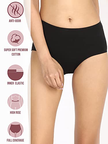 NYKD Cotton Anti-Microbial Panties for Women, Seamless, High Rise, Full Brief, Stretch Full Rear Coverage with Inner Elastic Panty (Combo Pack of 3) Full Brief, NYP104, Black,Nude,Black, L, 1N : Fashion