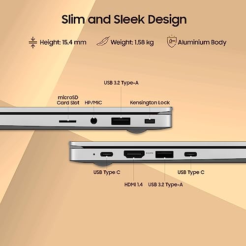 About this item Processor: 13th Generation Intel Core i5-1335U processor (up to 4.6 GHz 12 MB L3 Cache) | Memory: 8 GB LPDDR4x Memory | Storage: 512 GB NVMe SSD, additional slot- expandable upto 1TB | Intel Iris Xe Graphics Operating System: Windows 11 Home | Pre-Installed Software: MS Office Home & Student 2021, Live Message, Live Wallpaper, McAfee Live Safe (Trial), Screen Recorder, Samsung Gallery, Samsung Flow, Samsung Notes, Samsung Recovery, Samsung Settings, Studio Plus, Samsung Update, Samsung Security, Quick Share, Galaxy Book Smart Switch, Samsung Pass, Samsung Multi Control Display: 15.6″ (39.6 cm) | 1920 x 1080 resolution| 60Hz | Design: Aluminum body with 15.4mm thinness and 1.58kg weight Ports: 2 USB Type-C, 2 USB 3.2, 1 HDMI, MicroSD Multi-media Card Reader, 1 Headphone out/Mic-in Combo, | Wi-Fi 6 | Without CD-drive |Battery: 54 Wh, Charger: 45 W USB Type-C Adapter Camera: 720p , Intelligent Video Call Solution with Intel Collaboration |Stereo , Dolby Atmos Speaker | Microphone: 1 Headphone out/Mic-in Combo | Keyboard: Keyboard (Backlit) | FingerPrint Reader Galaxy Ecosystem: Samsung Pass, Second Screen, Multi Control, Quick BT Connection, Phone Link, Quick Share, Private Share, Galaxy Book Experience
