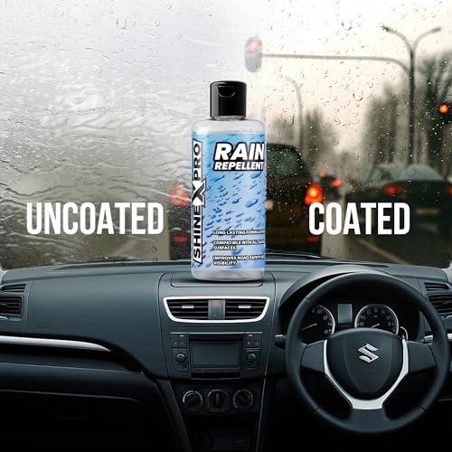 ShineXPro Rain Repellent for Car – Long Lasting Hydrophobic Coating for All Glass Surfaces with ShineXPro Car Glass Water Repellent – Improve Road Visibility & Safety with Windshield Water Repellent : Car & Motorbike