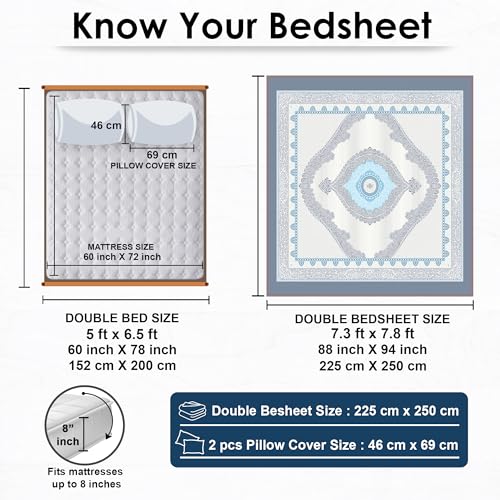 About this item Luxurious Jaipuri Cotton Bedsheet:This bedsheet is crafted from Jaipuri cotton Feel block print, renowned for its quality and comfort. It’s specifically designed for both king and queen size beds, Bedsheet measuring 225X 250 CM, providing ample coverage for larger beds. The ivory base exudes understated luxury, instantly warming a room without overpowering its decor. This bed sheet double bed refined Jaipuri print, characterized by meticulously hand-drawn florals, Soft feel Glace Cotton, 210 Thread Count. Designs are inspirited by Artisans from Rajasthan – Jaipur using no color bleeding technology for printing. Pairing beautifully with the sheet are two ivory-accented pillow covers, designed to mirror the bedsheet’s aesthetic both in color and print. This bedsheets just about matching—it’s about composing a harmonious sleep setup. When spread out, the set collectively tells a story; each element echoes another, creating a visual rhythm across your bed. Vibrant Jaipuri Print: The bedsheet features a vibrant Jaipuri print developed by Artisans, characterized by traditional designs and intricate patterns. Jaipuri prints are known for their rich colors and artistic motifs, adding a touch of cultural elegance to any bedroom decor. The microfiber-based cotton feel is easy-care, resisting pilling and retaining its softness wash after wash, a detail to highlight for value-conscious buyers seeking long-term quality without the upkeep of pure cotton. Breathable Fabric: microfiber bedsheet is breathable, allowing air to circulate and body heat to dissipate, which helps in keeping you cool during warmer seasons and comfortable during colder ones. This feature makes it suitable for year-round use. looks presentable even after hurried cleaning, and that it keeps your bedroom looking fresh with minimal effort. This aesthetic bedsheet single bed sheet emerges clean, bright, smooth, ready to impress guest. Easy Care:This bedsheet is easy to maintain. It is machine washable, and you can tumble dry it on low heat. This convenience ensures that it remains clean and fresh with minimal effort. It elevates a space. With its Jaipuri print rooted in Rajasthani tradition and ivory elegance, it offers meaningful visual and cultural value at everyday. For gift occasions like weddings, housewarmings, or festival celebrations, it stands out as an elevated comfort, and practicality that’s rare to find.