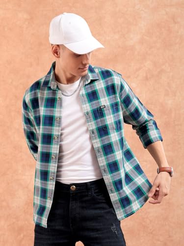 The Indian Garage Co Men’s Checkered Slim fit Casual Shirt (0219-SH01-14_Green & Navy M-102CM) : Clothing & Accessories
