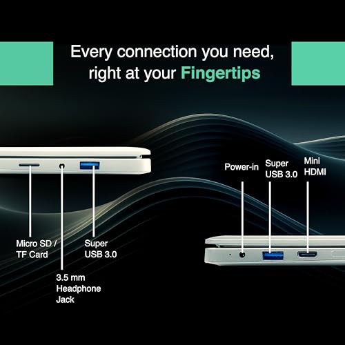 Equipped with Super USB 3.0, Mini HDMI, Micro SD slot & more, this laptop ensures you’re always connected whether you’re transferring data or expanding your setup. Versatility that keeps pace with your every move.