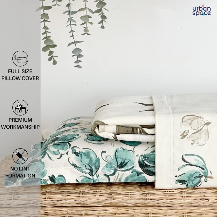 Urban Space 100% Cotton Floral Bedsheet for King Bed, Serene 200 TC Bedsheet King Size Bed Cotton with 2 Pillow Cover (108 x 108 inches, Majestic Aqua) : Home & Kitchen