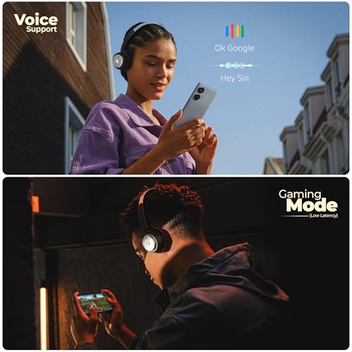 About this item ERGONOMIC DESIGN: Enjoy all-day comfort with lightweight headphones designed with soft, durable earcups. CONNECTIVITY: Features BT v5.4 for seamless wireless connection and supports dual pairing with two devices. ENC: Reduces background noise for clear call audio even in noisy environments. CALLING FUNCTION: Built-in calling function to stay connected effortlessly. INCREDIBLE AUDIO: 40mm drivers deliver crystal-clear acoustics and powerful bass. LOW LATENCY GAMING: Optimized for high-speed gaming with minimal lag. VOICE ASSISTANT SUPPORT: Convenient control of audio, calls, and alarms via voice assistant.